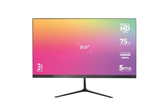 Acteck Panel de 21.5" IPS, resolución max 1920 x 1080 (FHD), Frecuencia: 75hz, ángulo de visión 178°(H) x 178°(V), Salidas: VGA + HDMI, color negro.